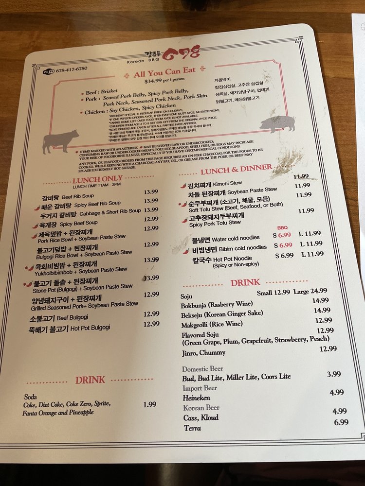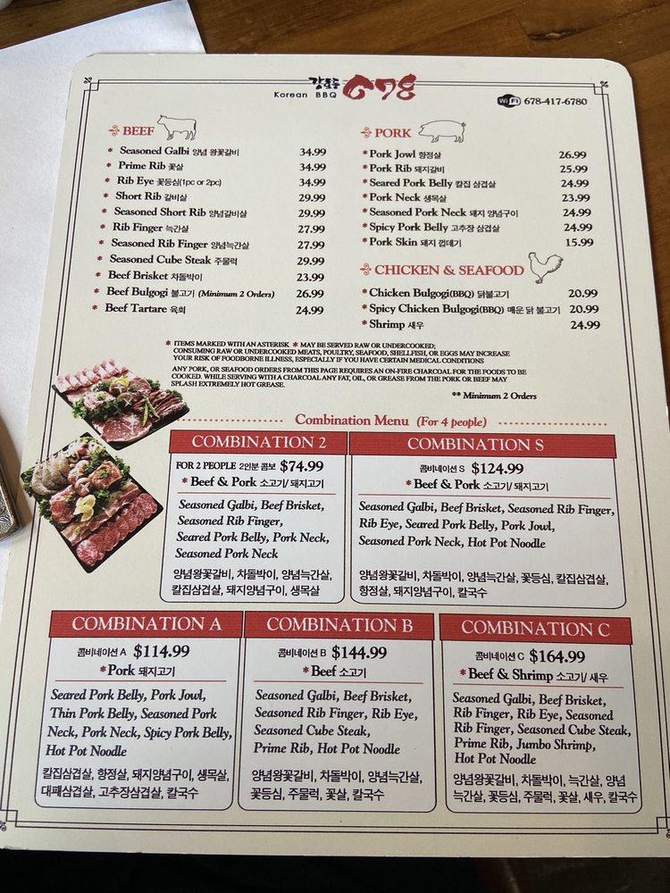 678 Korean BBQ Menu